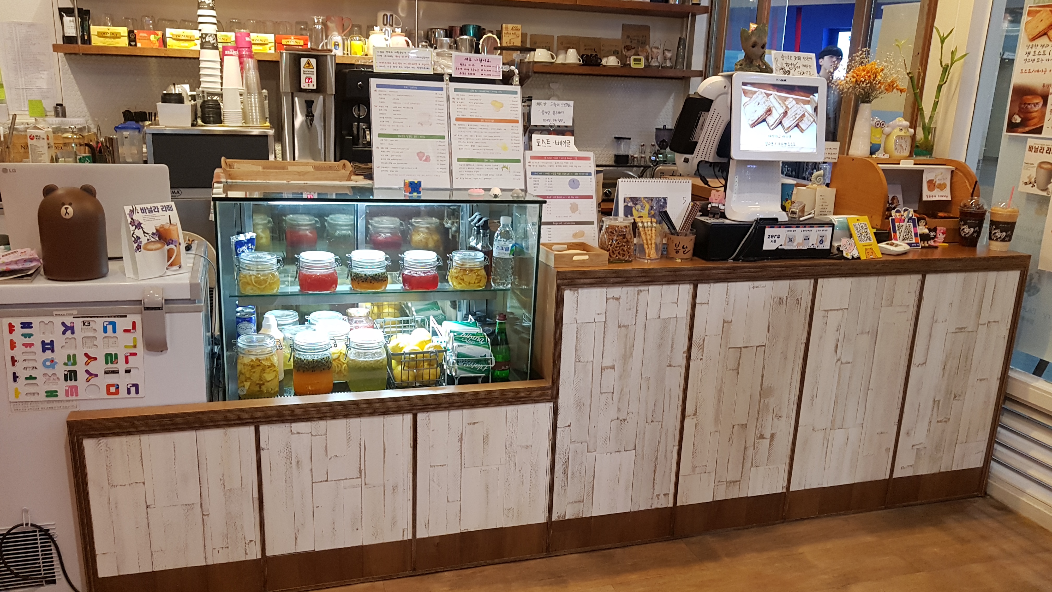 카페 데스크 앞이 아래 사진처럼 민밋해서 인테리어를 해보기로 했습니다..