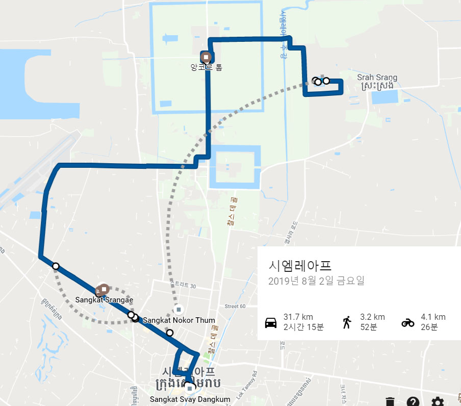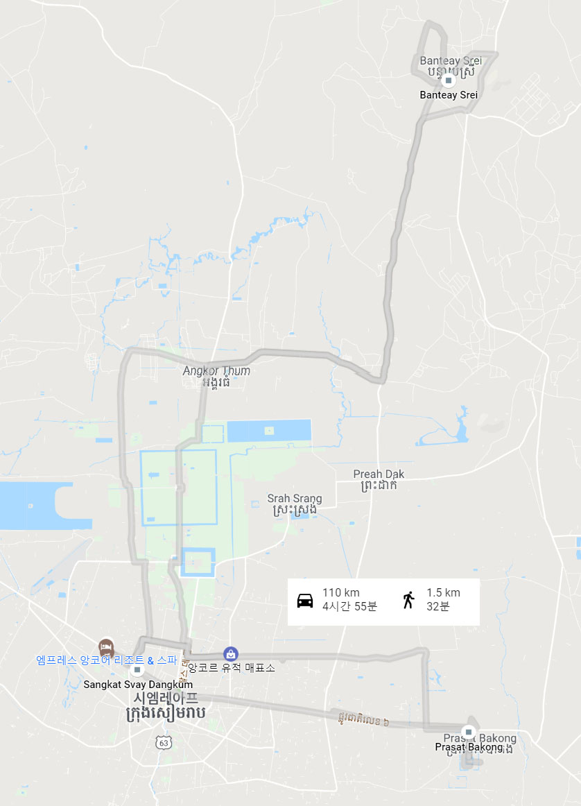 지도를 보시면 호텔-반스레이-바콩까지 이동거리가 좀있습니다.