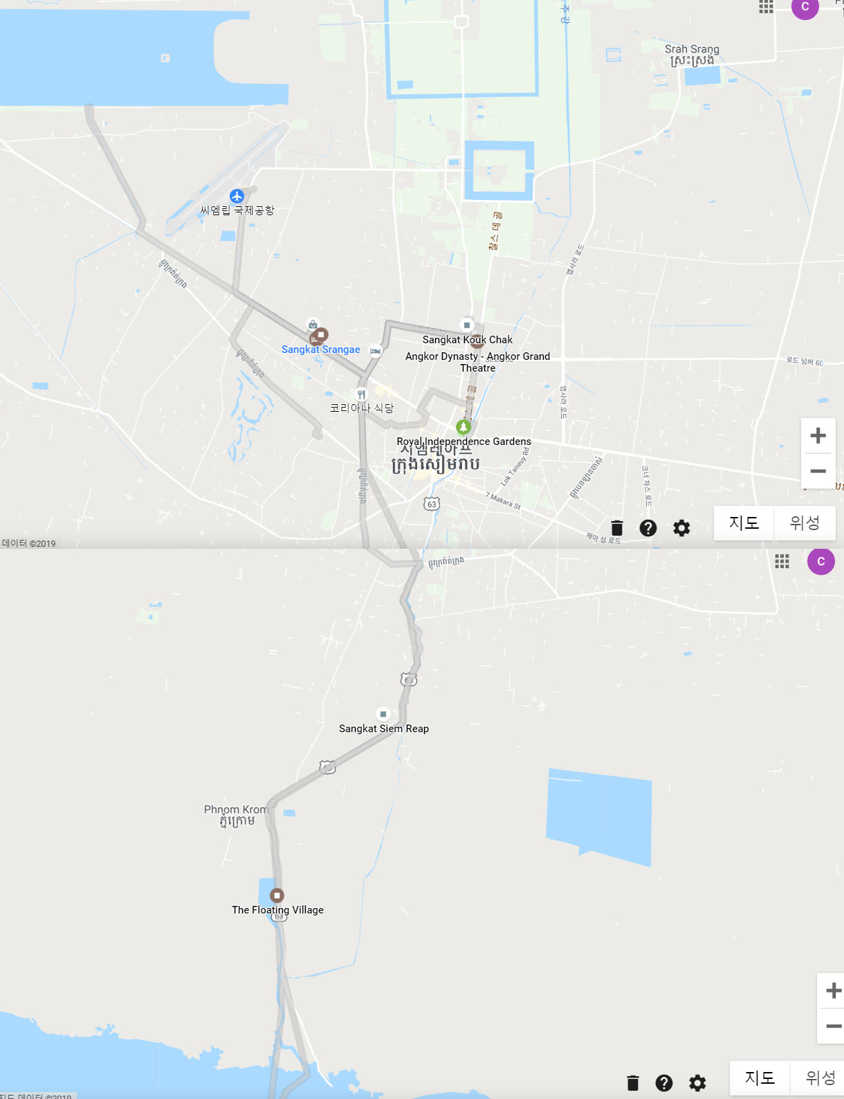 공항에서 시내까지, 시내에서 앙코르와트 유적지까지 무지 가깝습니다. 좀 무리하자면 걸어다녀도 될만한 거리입니다.