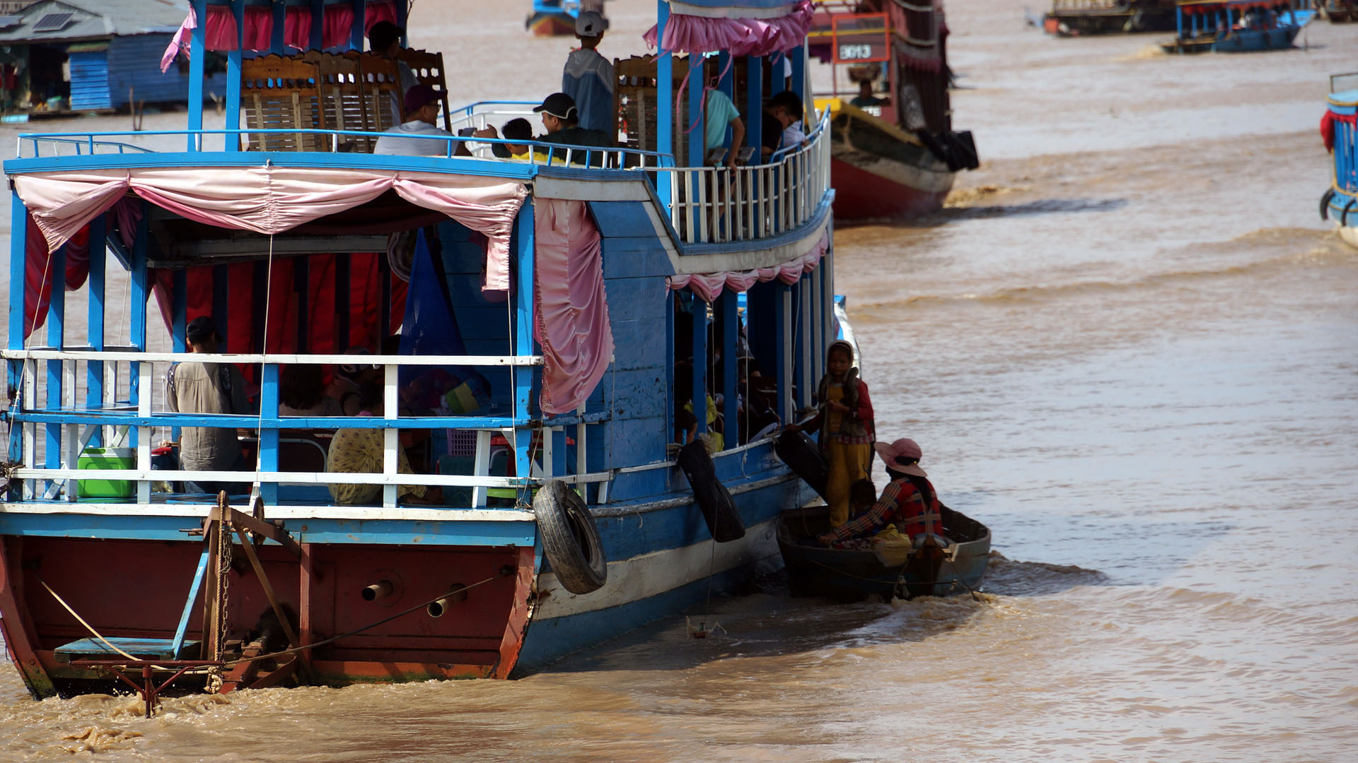 쪽배를 타고 수상마을을 관람하는 코스라... 현지 사람들 사는 모습들을 많이 보게 됩니다.