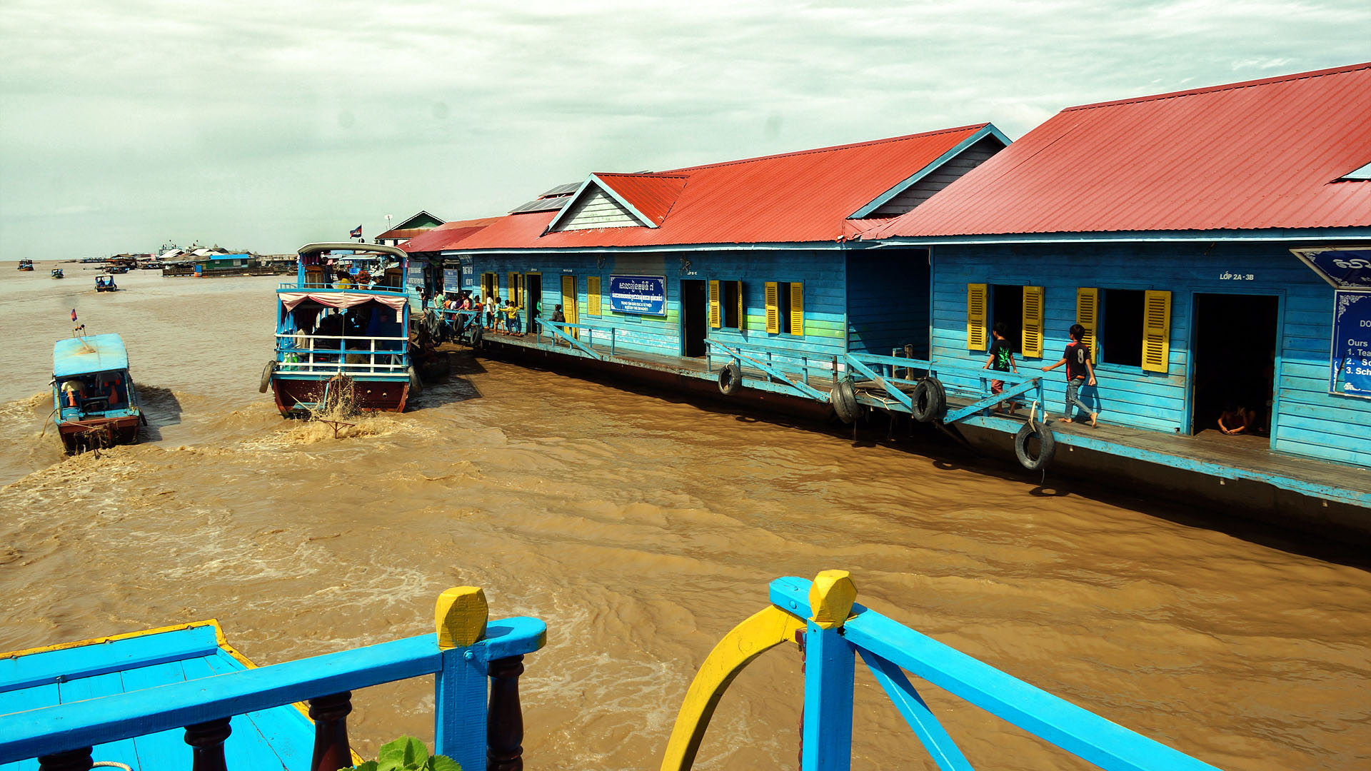 시끄러운 배들이 지나다니는 길목에 위치한 학교