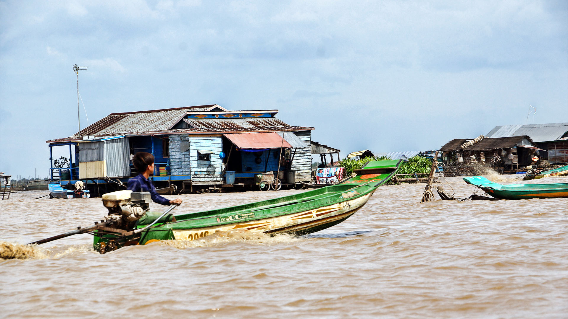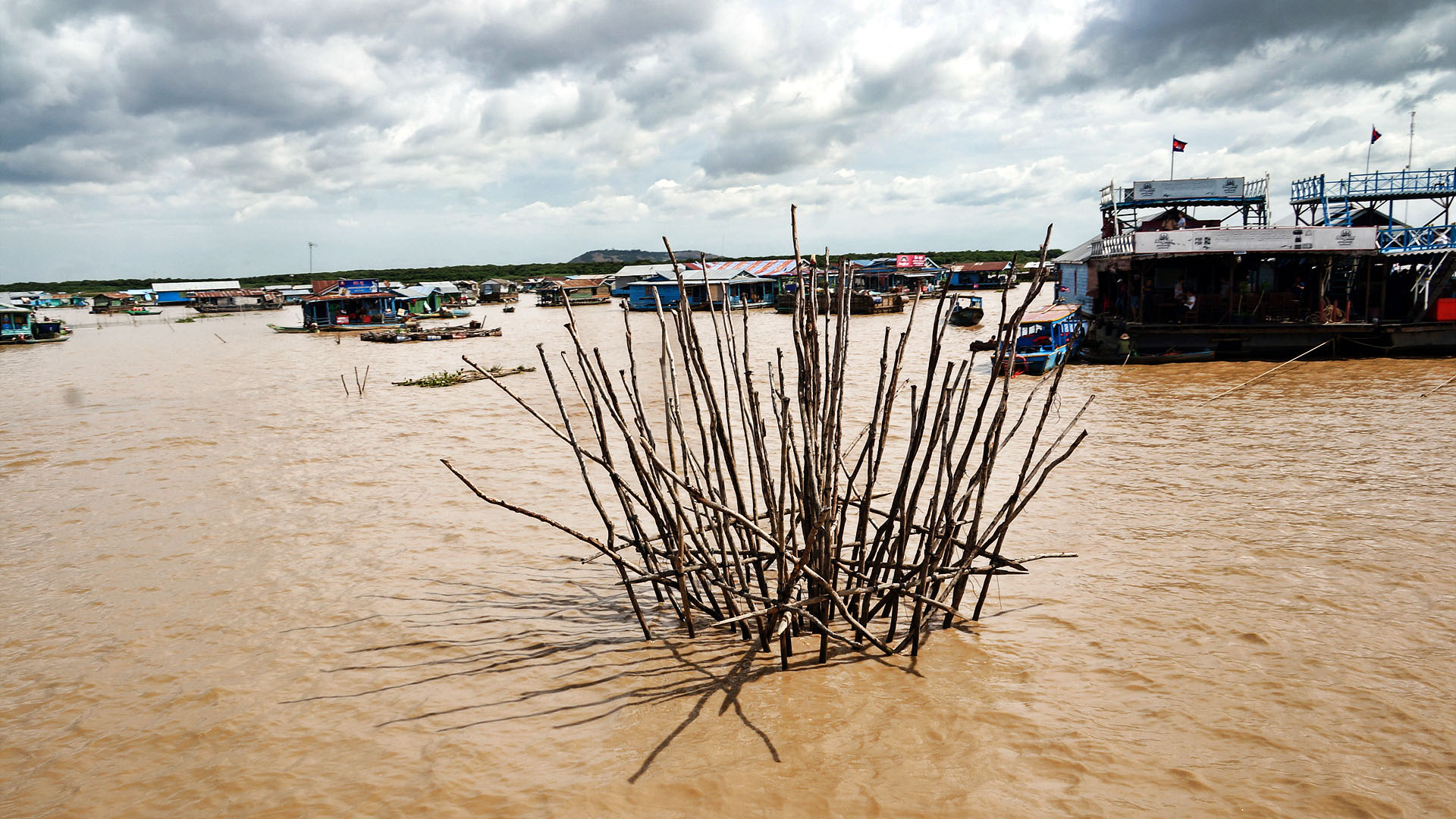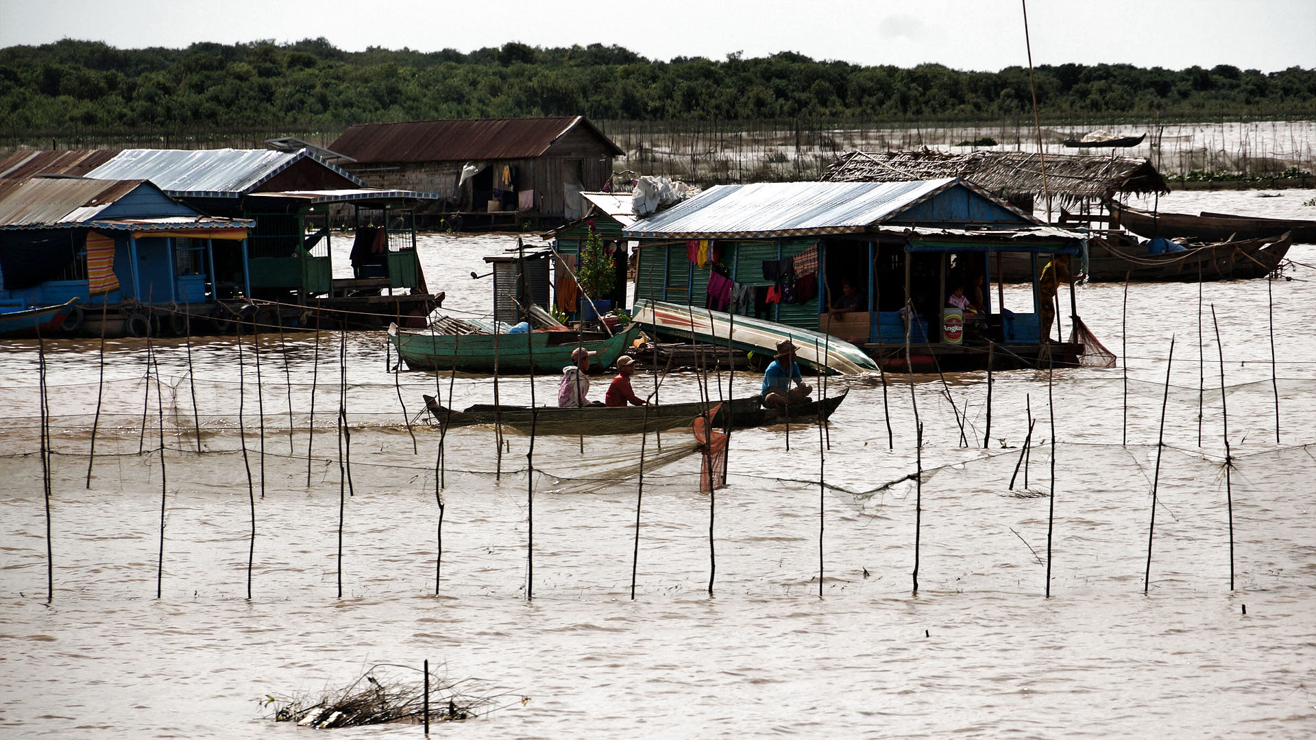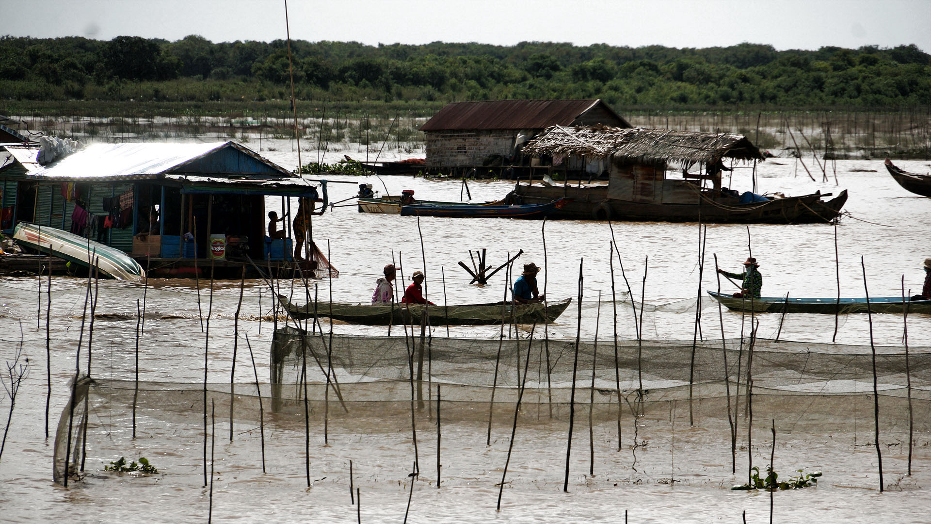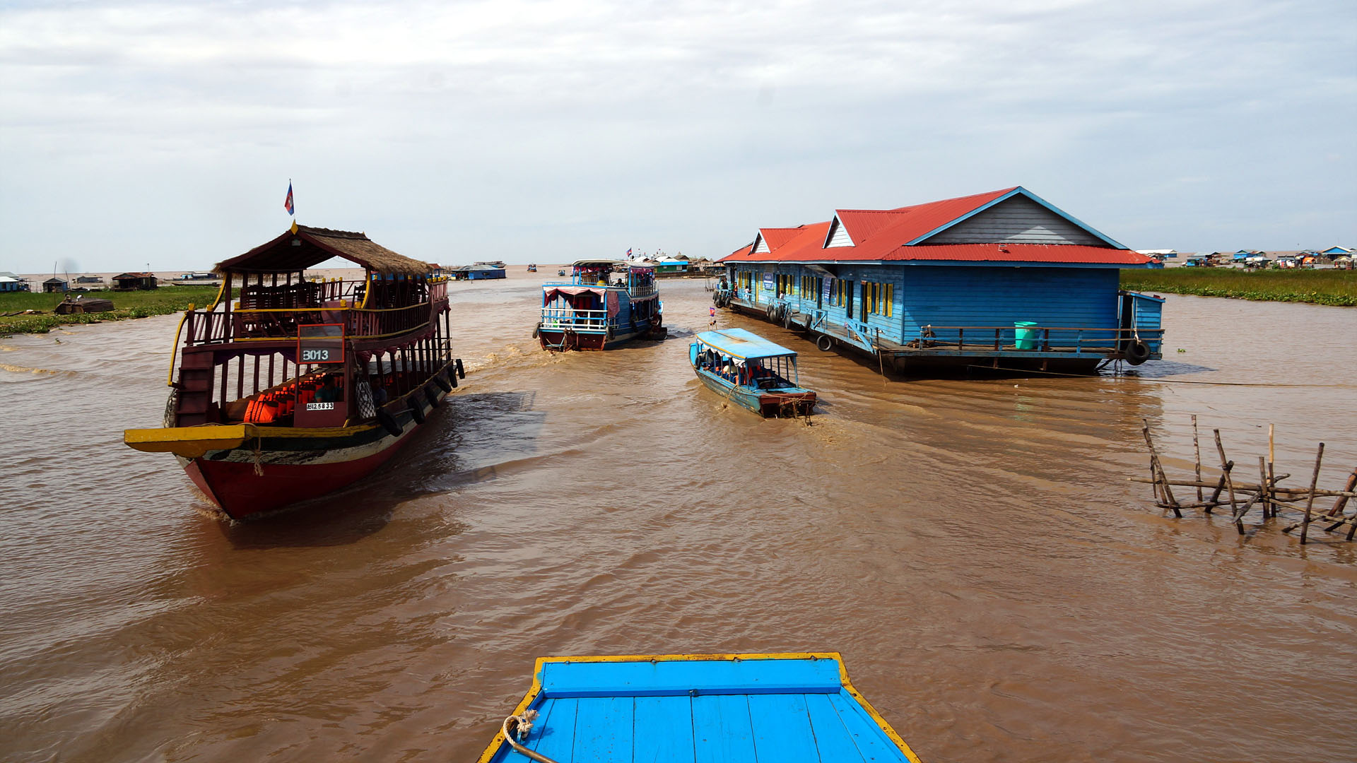 톤레삽 호수로 버스로 이동해서 배를 타고 수상마을까지 이동한후