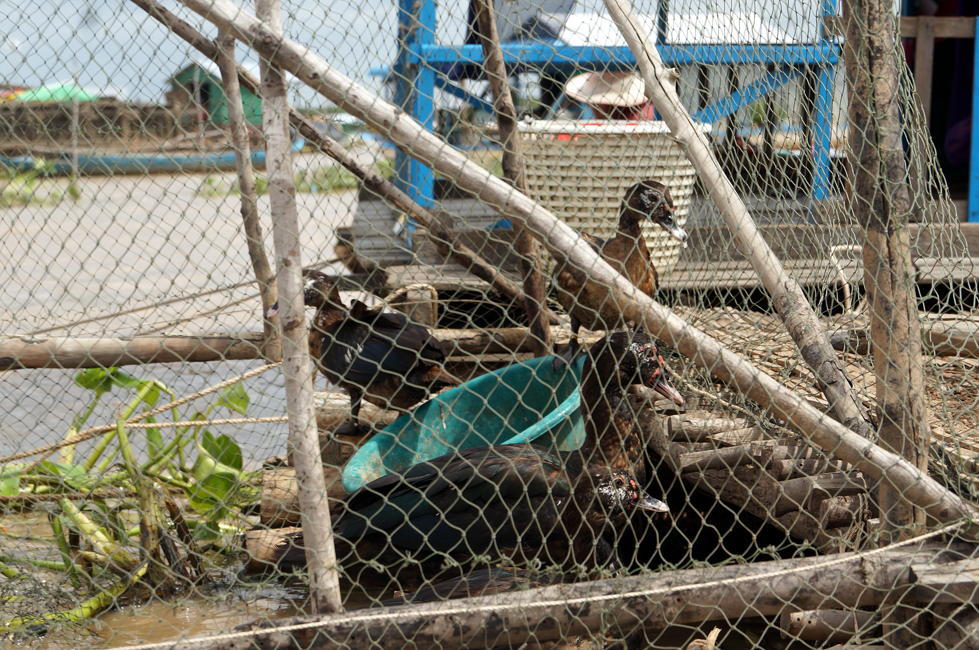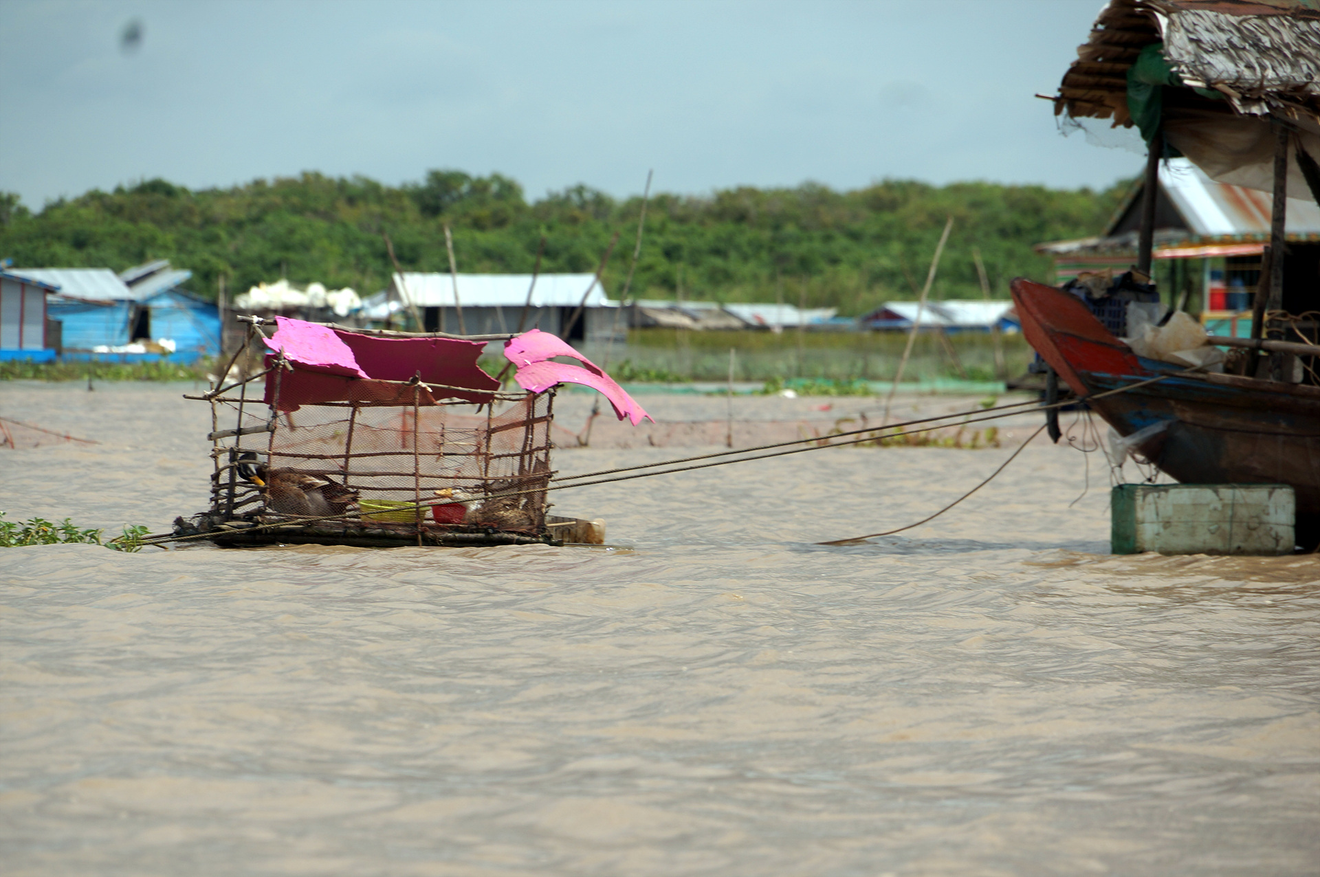 수상마을 답게 물위에 떠있는 닭장..