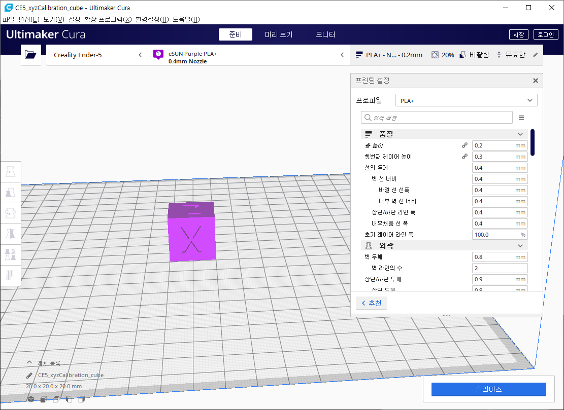 2. 슬라이스라는 작업을 통해 gcode로 변환해야 합니다.