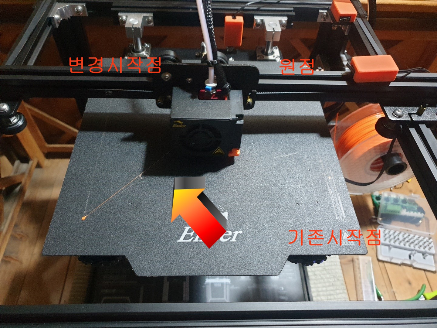 또한 기존제품은 출력완료후 원점으로 가서 대기 하는데.. 변경품은 원점이 좌측 앞면이라... 베드를 떼어낼때 많이 거슬리게 됩니다..