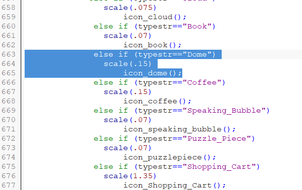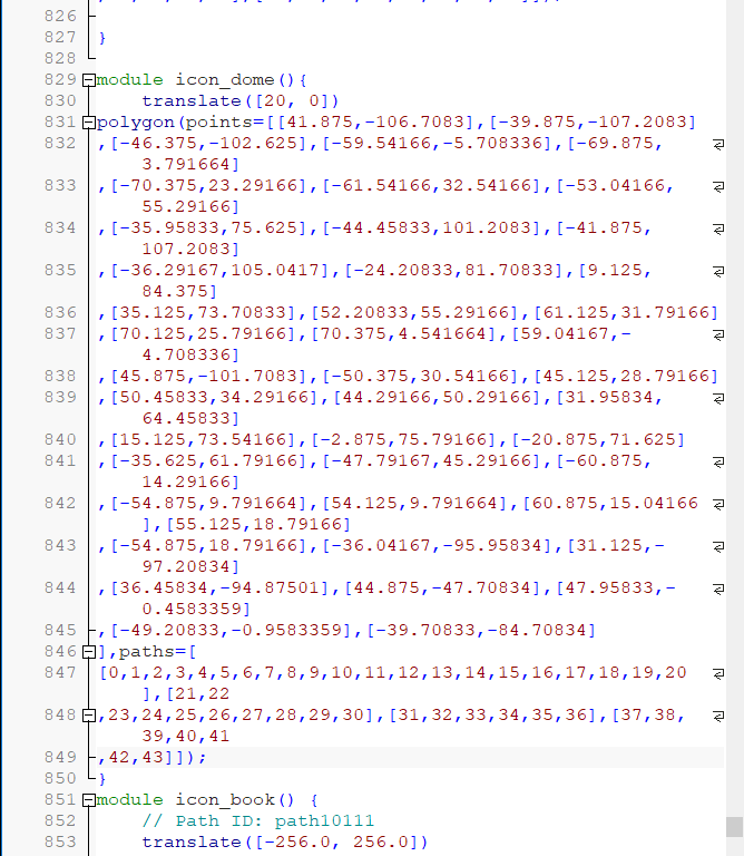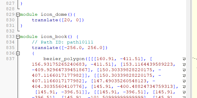 scale(.15) icon_dome(); // => scale로 크기를 조절해줘야 합니다.