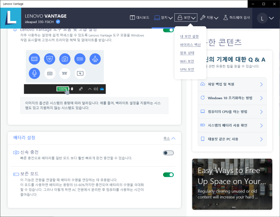 LENOVO VANTAGE설치한 다음