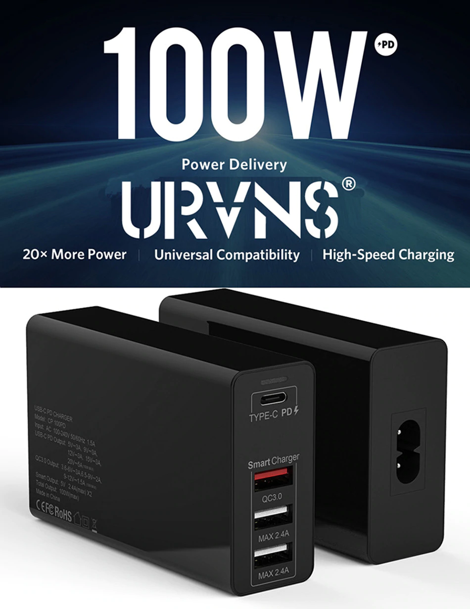 US $6.54 56% OFF|URVNS 100W USB C PD 충전기 유형 C USB 4 포트 충전 스테이션 삼성 아이폰 화웨이 QC 3.0 빠
