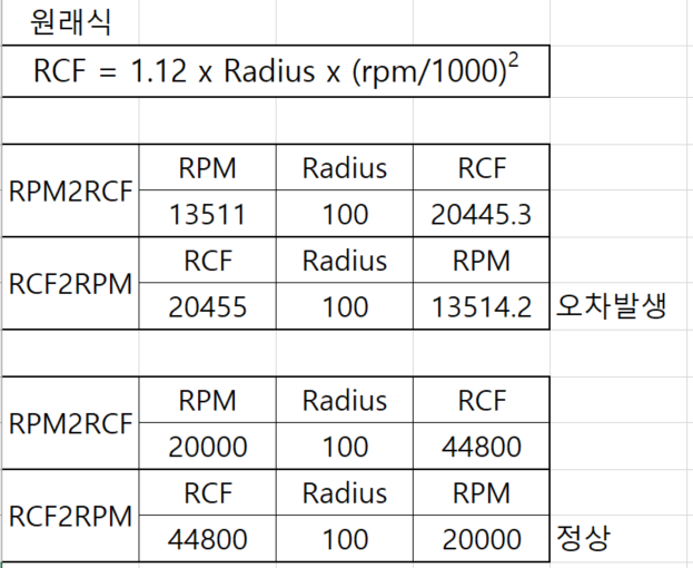RPM과 RCF를 왔다 갔다 해야 하는 상황이라면 아래 공식 적용