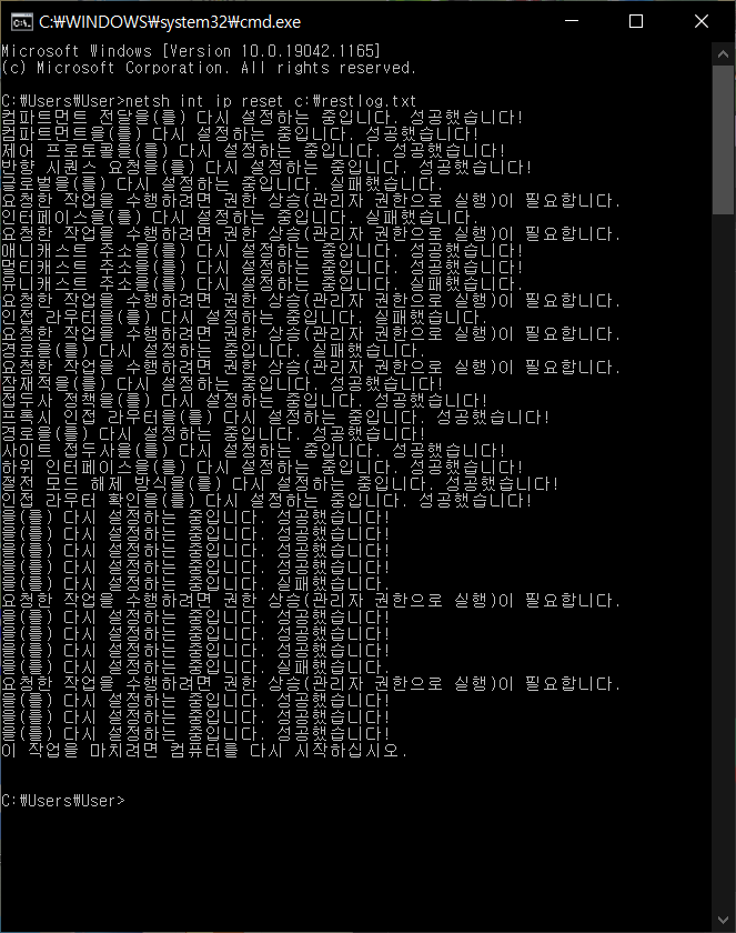 netsh int ip reset c:\restlog.txt