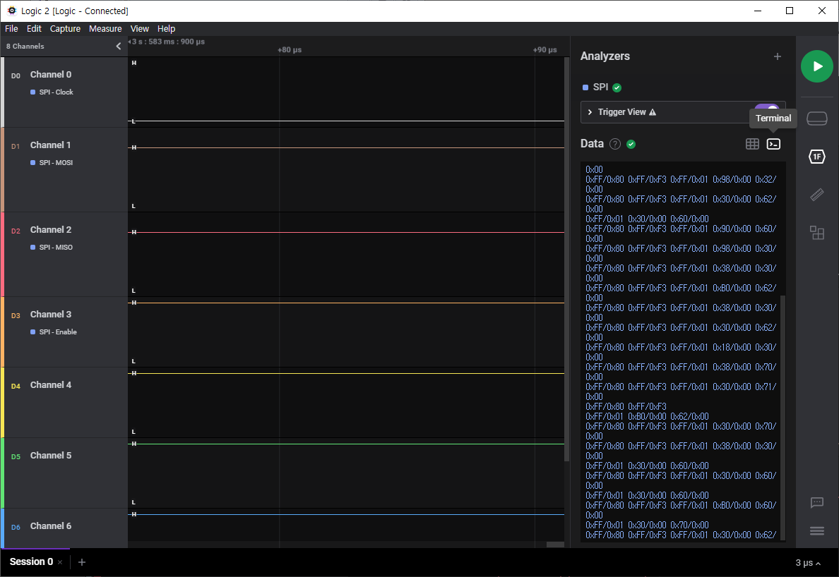 I2C, SPI, UART등 터미널 데이타를 볼 수 있어서 매우 편리하다.