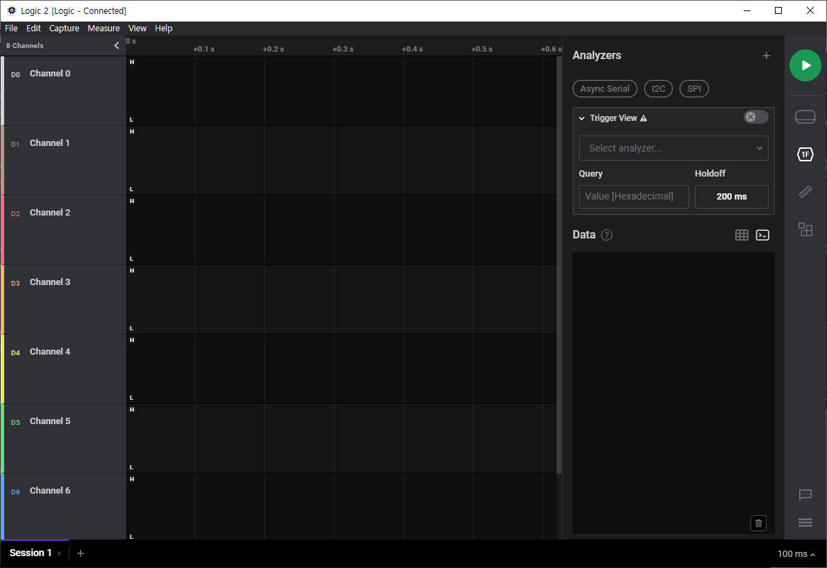 오른쪽 녹색 RUN버튼을 누르면 정지버튼을 누를때까지 로그되고..