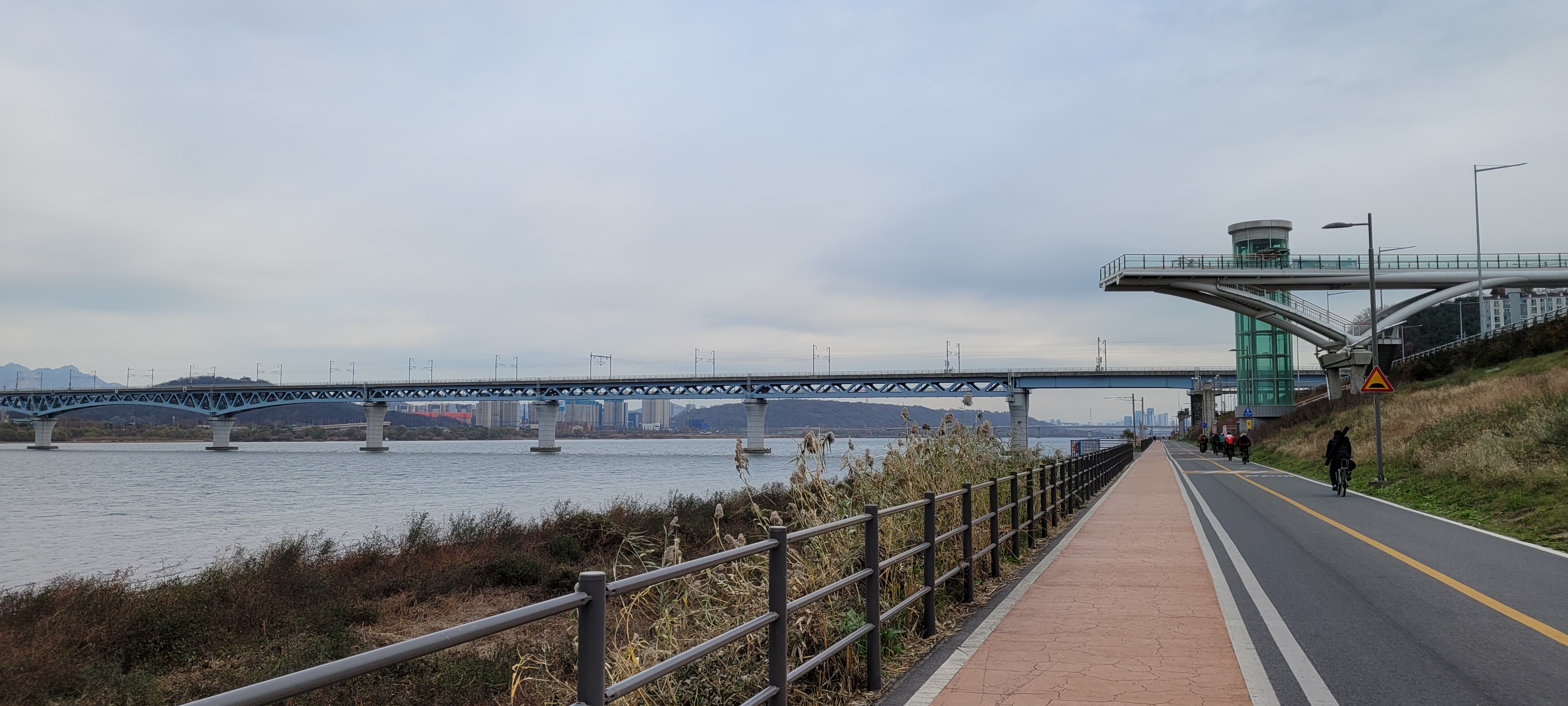 집까지 걷기엔 무리가 가고 날도 흐려져 마곡나루역에서 전철을 탔다... 전철에서 내리니 비가 쏟아지기 시작..
