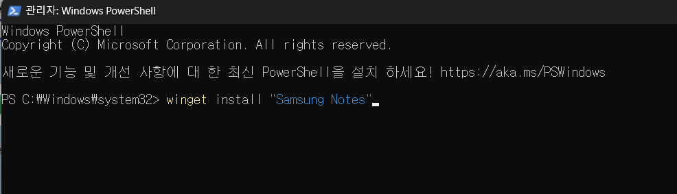 winget install "Samsung Notes" 를 입력한 다음 실행...