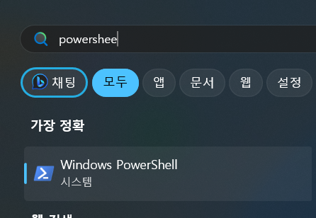 > 시작버튼 누른다음 POWERSHELL을 눌러서