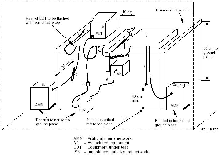 This test is essentially to measure radiated EMI emissions coming off cables, and generally applied to equipment where EMI emissions are more likely to be radiating from the cables than from the enclosure itself – such as electric tools, regulating controls using semiconductor devices, motor-driven electro-medical apparatus and the like. The test focuses on the cables connected to the equipment, and requires the cables under test to be extended to at least 6m in length.
