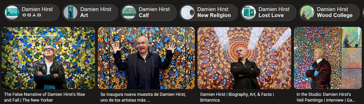 - Damien Hirst: 영국의 현대 미술가로, 주로 죽음과 생명, 아름다움과 과학을 주제로 한 설치 미술, 조각, 회화를 만듭니다. 그의 유명한 작품으로는 포름알데히드에 보존된 상어와 다이아몬드로 장식된 해골이 있습니다12.