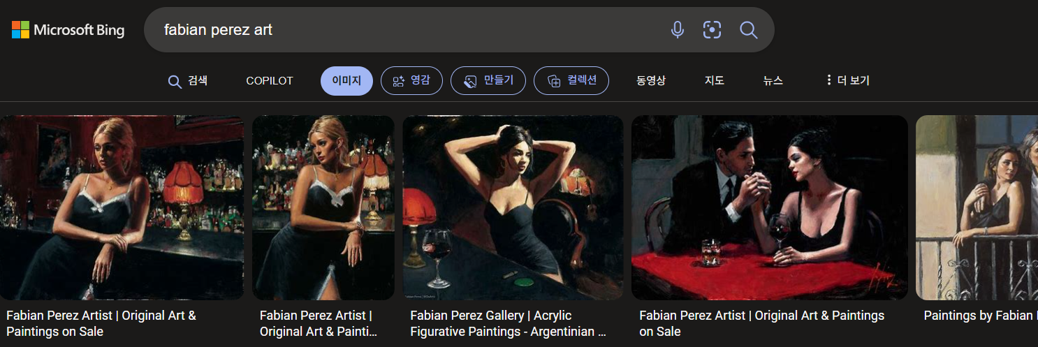 - 프로필: 파비안 페레즈는 아르헨티나 출신의 화가로, 탱고와 플라멩코 춤, 나이트클럽 생활을 주제로 한 작품으로 유명합니다.