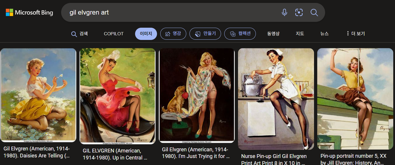 - 프로필: 길 엘브그렌은 미국의 일러스트레이터로, 핀업 걸 그림으로 유명합니다.