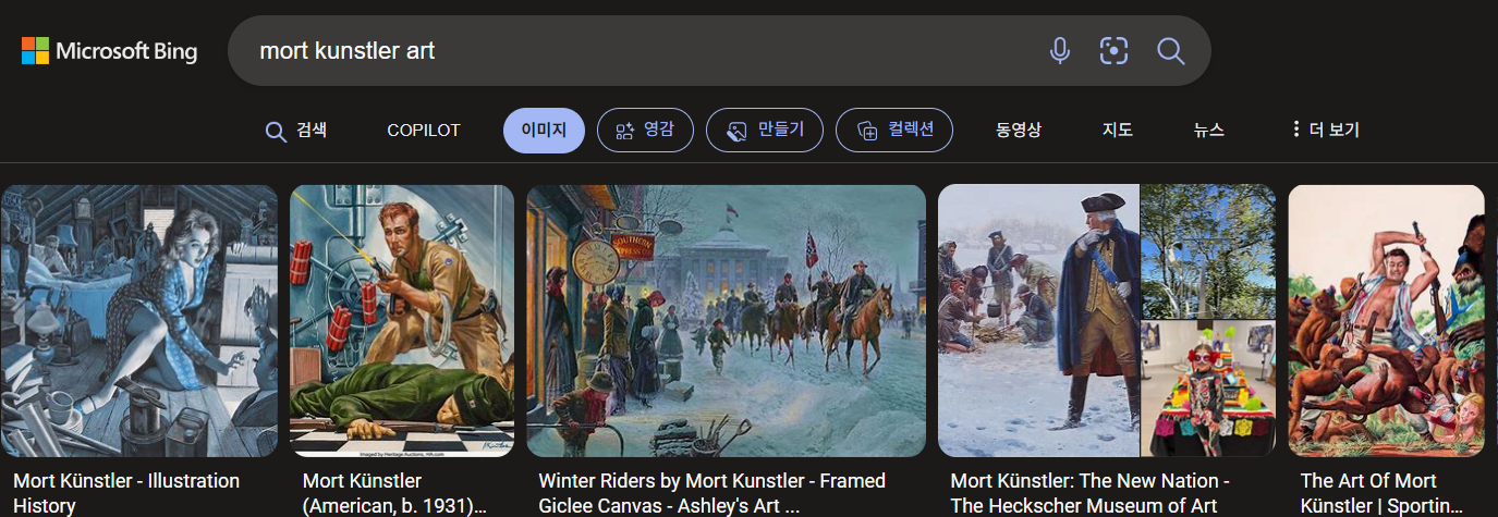 Mort Künstler: 미국의 역사 화가로, 주로 미국 남북전쟁과 서부 개척 시대를 그린 작품으로 유명합니다.