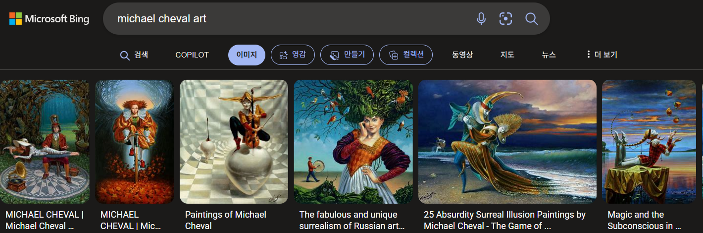 Michael Cheval: 러시아 출신의 화가로, 주로 초현실주의 스타일의 작품을 만듭니다.
