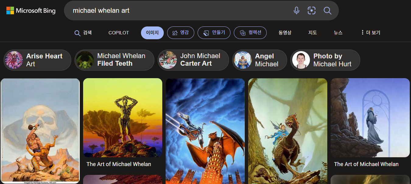 Michael Whelan: 미국의 일러스트레이터로, 주로 SF와 판타지 장르의 책 표지와 일러스트를 만듭니다.
