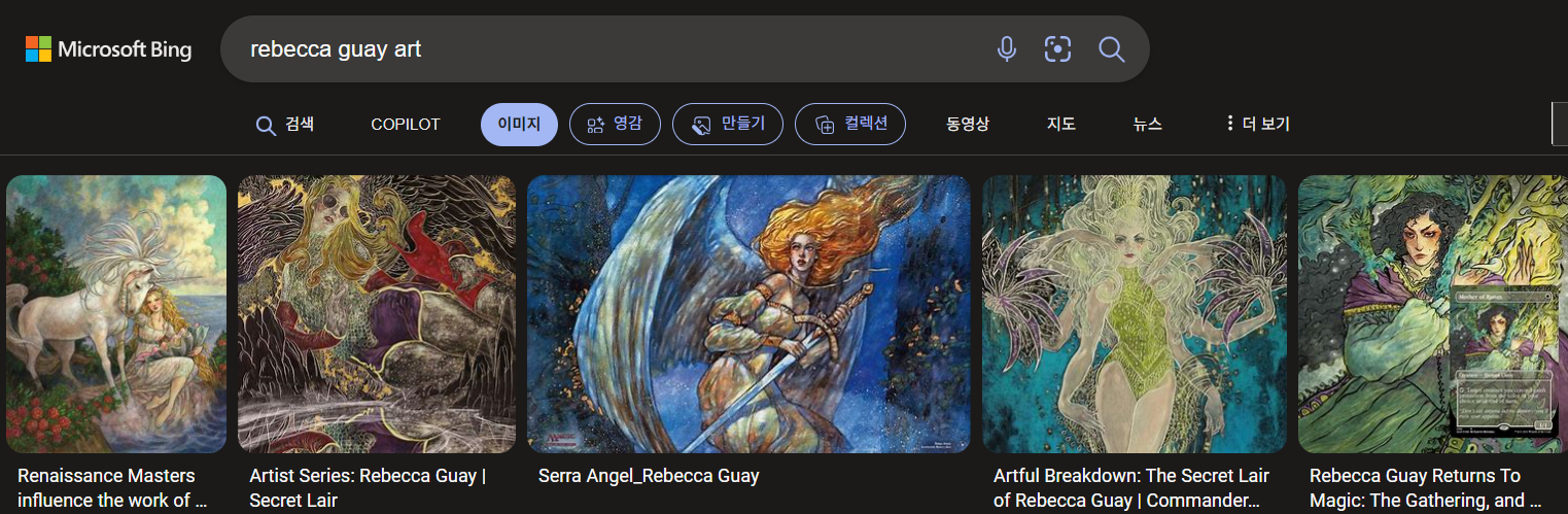 Rebecca Guay: 미국의 일러스트레이터로, Magic: The Gathering 카드 게임과 여러 그래픽 노블에 참여했습니다. Wikipedia, R. Michelson Galleries