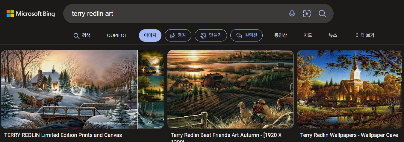 Terry Redlin은 미국의 화가로, 미국의 농촌 풍경을 낭만적으로 그린 작품으로 유명합니다.