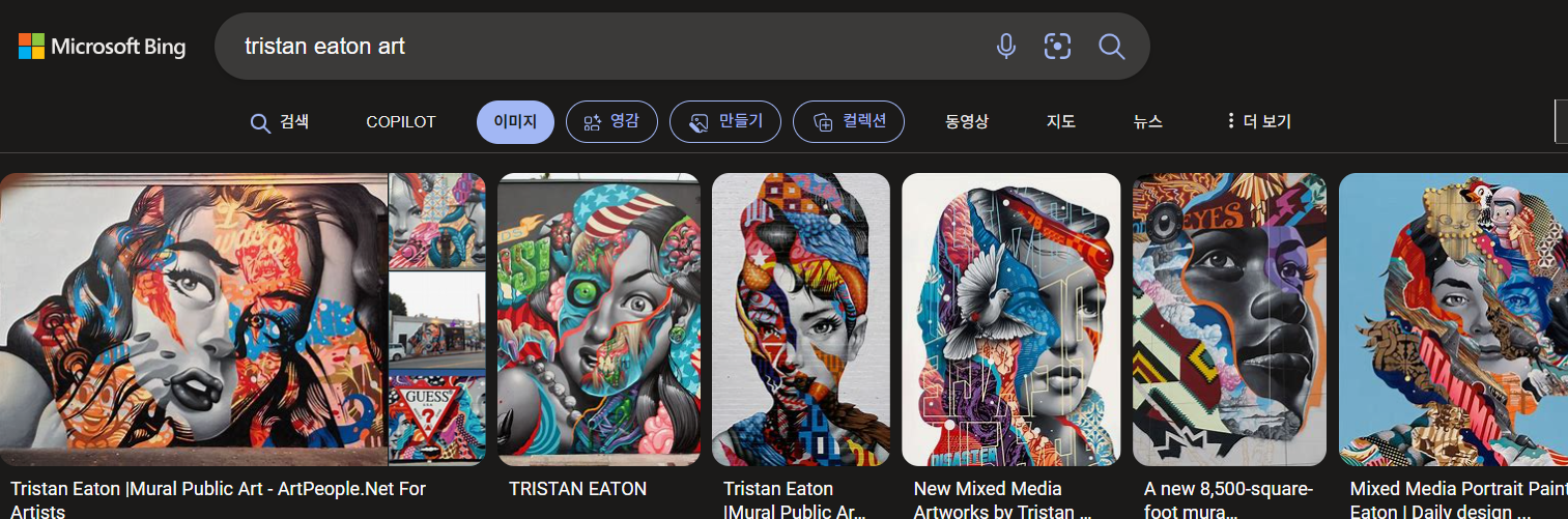 Tristan Eaton은 미국의 스트리트 아티스트로, 대형 벽화와 팝 아트 스타일의 작품으로 유명합니다. 작품 보기: https://www.tristaneaton.com/