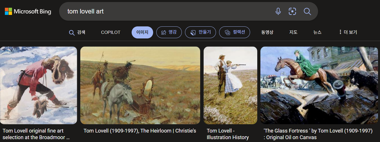 Tom Lovell은 미국의 일러스트레이터로, 역사적 장면과 서부 개척 시대를 그린 작품으로 유명합니다. 작품 보기: https://www.thomaslovell.com/