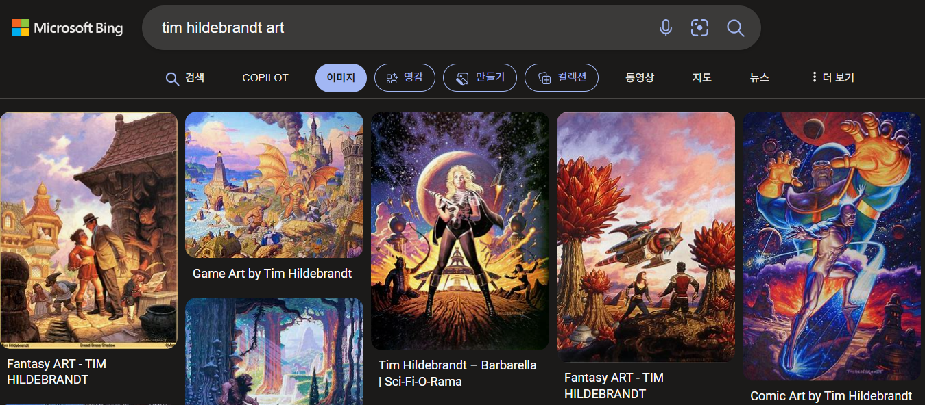 Tim Hildebrandt는 미국의 일러스트레이터로, 판타지와 공상 과학 소설의 삽화로 유명합니다.