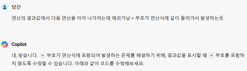 이제 결과값이 = 부호 없이 표시되므로, 다음 연산을 이어 나갈 때 문제가 발생하지 않을 것입니다. 추가적인 도움이 필요하면 언제든지 말씀해주세요! 😊