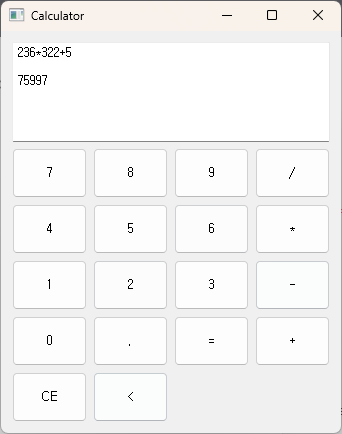 이제 키보드 입력도 계산기 프로그램에 연결되었습니다. Enter 키를 누르면 결과가 계산되고, Backspace 키를 누르면 한 글자씩 지워집니다. 다른 키를 누르면 해당 키가 디스플레이에 추가됩니다.