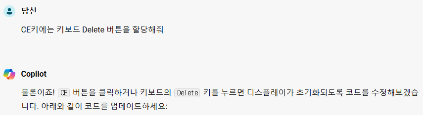 이제 CE 버튼을 클릭하면 디스플레이가 초기화됩니다. 추가적인 도움이 필요하면 언제든지 말씀해주세요! 😊