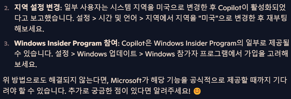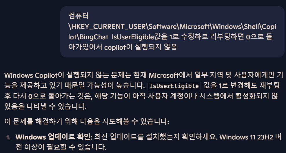 그래서 보니... 아래와 같은 문제가 생겨서 edge열어서 copilot에 다시 물어보았다..