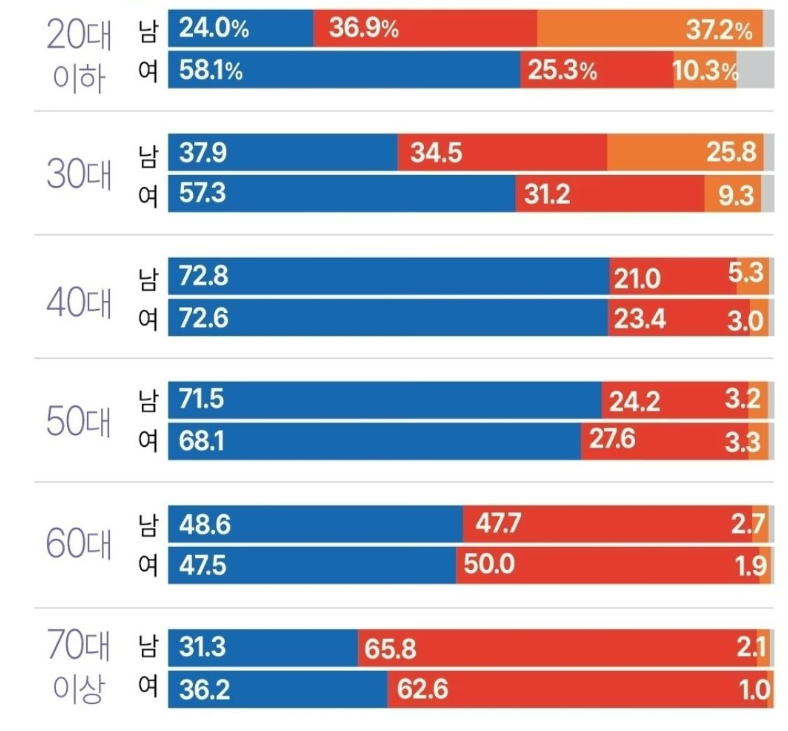 게엄령과 탄핵 사태에도 불구하고 20-30대 남성들 투표율은 무엇을 의미하는 것인지...