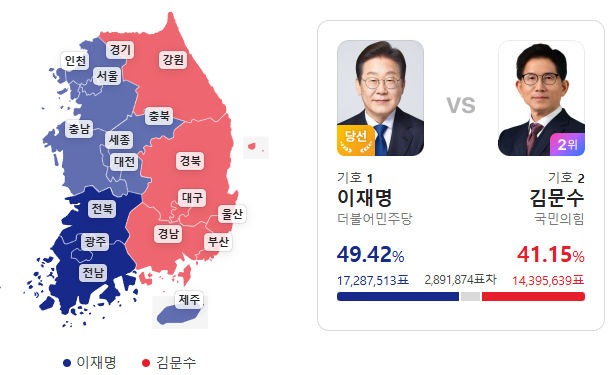 게엄령과 탄핵 와중에 41.15% 득표율이란게 참 대단하게 느껴진다.