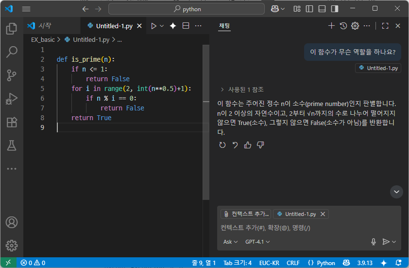 - 예: "이 함수가 무슨 역할을 하나요?", "파이썬에서 비동기 처리 예제 보여줘"