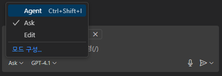 | Ask | 질문/설명/예제 코드 제공 | "이 코드 설명해줘" | 학습 중심, 대화형 Q&A | 초보자에게 유용 |