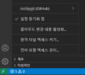 vscode에서 copilot을 사용하려면 GitHub계정으로 로그인 되어 있어야 한다.