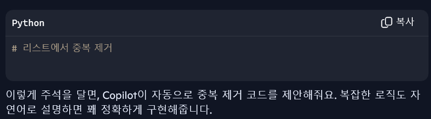 - 코드 설명 요청: “이 함수가 하는 일을 설명해줘”