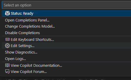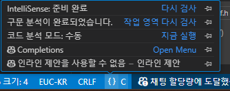 다시 켜려면 해당 메뉴가 Enable Completions로 바뀌어 있는데 다시 눌러주면 됩니다.