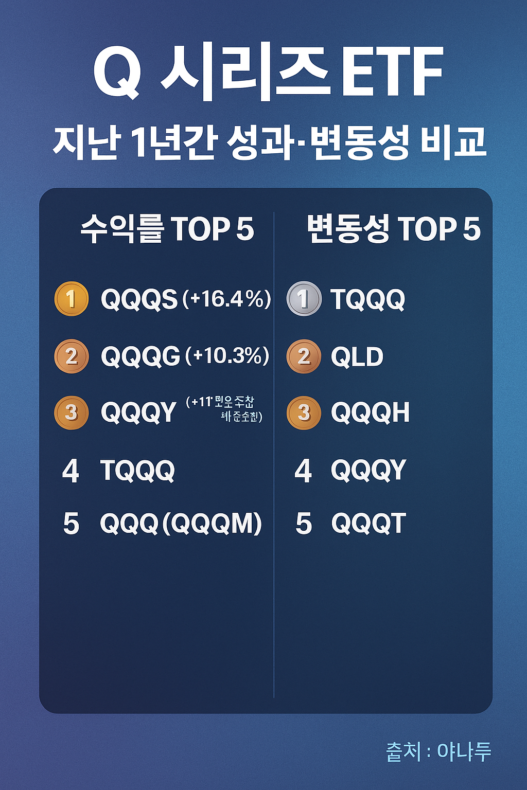 - 리스크 관리 중시: QQQT, QQQS, QQQE