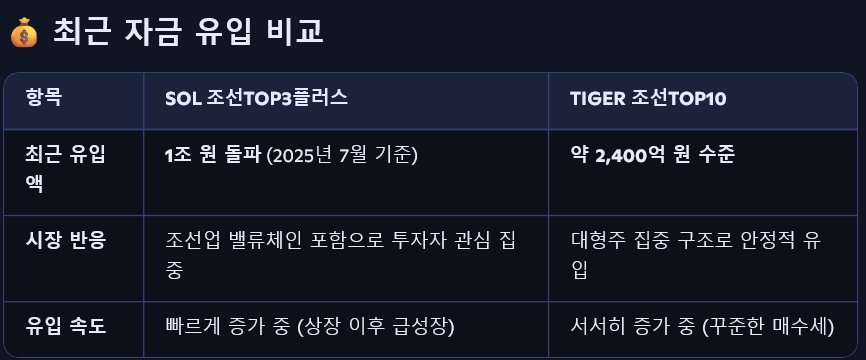 - 이는 TIGER ETF가 조선업 슈퍼사이클 초입에 먼저 반응했기 때문이며, SOL ETF는 후발 상장으로 최근 상승세가 강한 구조입니다.