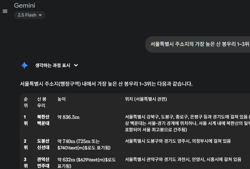 주소지 기준 서울특별시에서 가장 높은 봉우리로 검색하였더니..