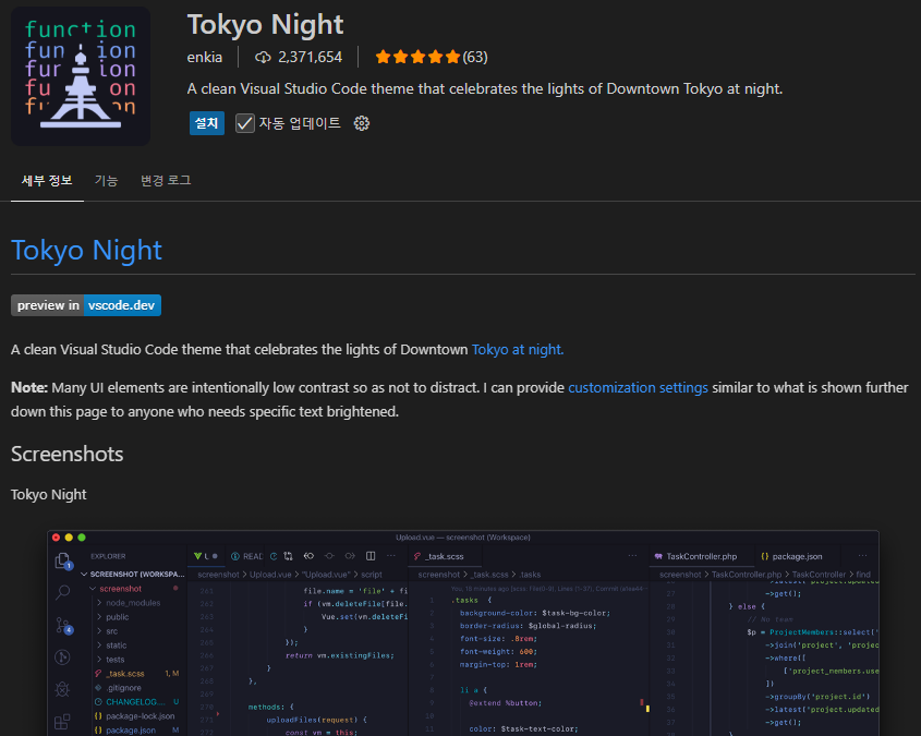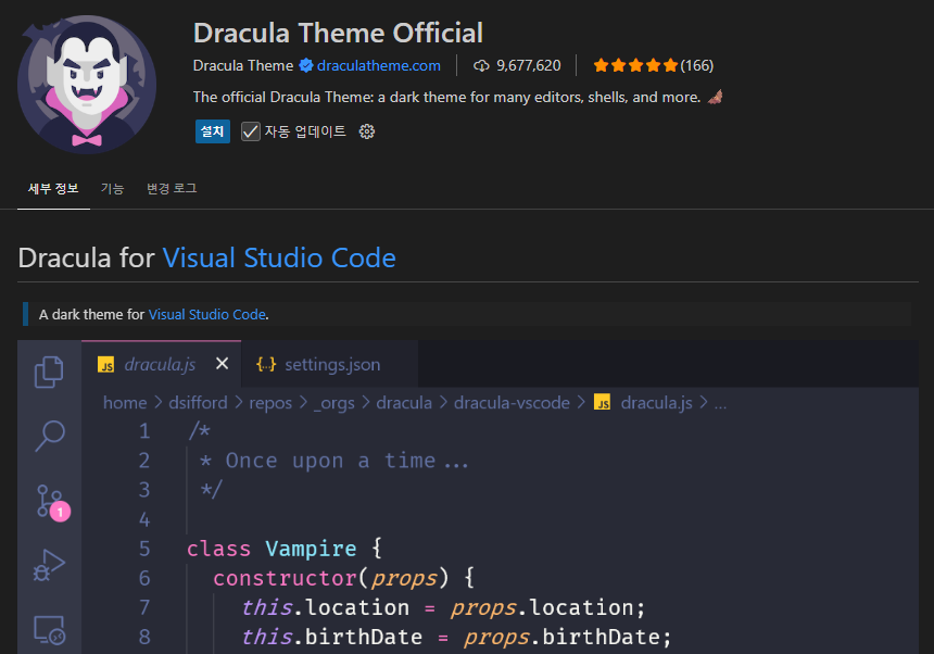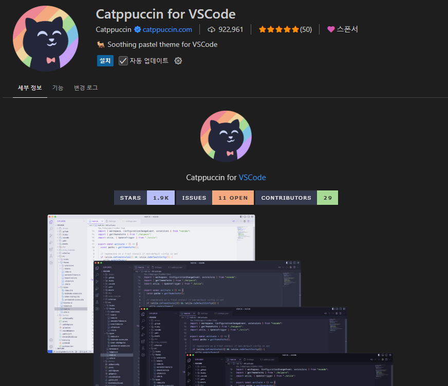 - 설치 후 Ctrl+K Ctrl+T로 테마를 빠르게 변경할 수 있습니다.