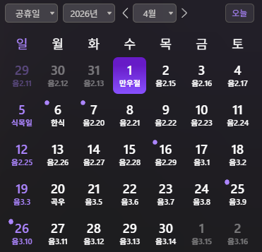 5월 24일 부처님 오신 날 > 5월 25일 (월) 대체 공휴일