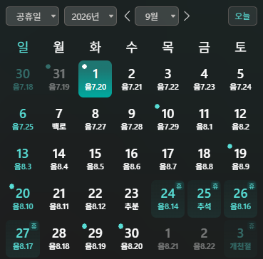 9월 30일 (추석 연휴) 목/금/토로 하루 손해보는 느낌